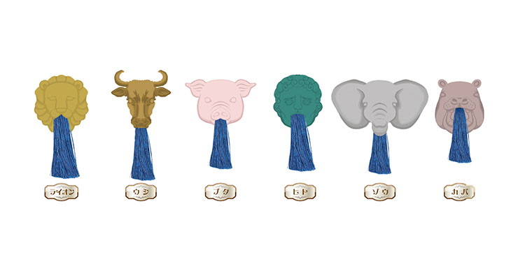 ラインナップは6種類で、「ライオン」「ウシ」「ブタ」「ヒト」「ゾウ」「カバ」を展開。