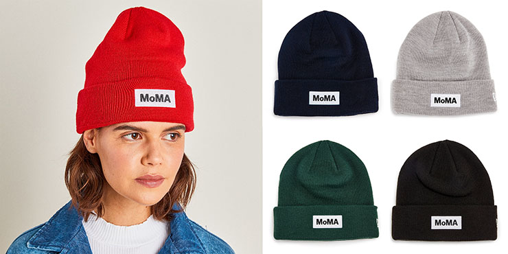 「MoMA BEANIE」は、モダンアートファンのためのデザイン。フロントに美術館のロゴ(MoMA)、サイドにはNEW ERAのロゴが刺繍されている。購入は一人につき、1型1点まで。なお本製品は第一弾で、ネオンカラーの第二弾も販売する。