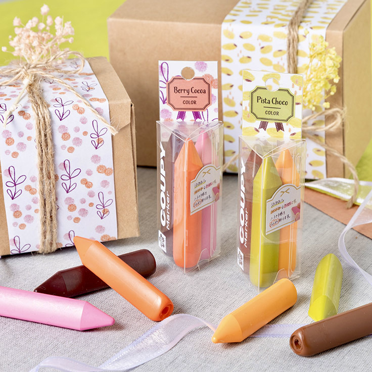 限定カラーは、チョコレートをコンセプトにした新色。限定パッケージもチョコレートをイメージしてデザインされており、ギフトにも適している。それぞれ3色セットで、価格は各440円(税込)。「ピスタチョコカラー」にはピスタチオ/チョコレート/オレンジピール、「ベリーココア」にはさくらんぼ/ベリーショコラ/いちごチョコと名付けられた色が含まれている。