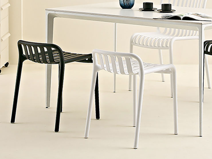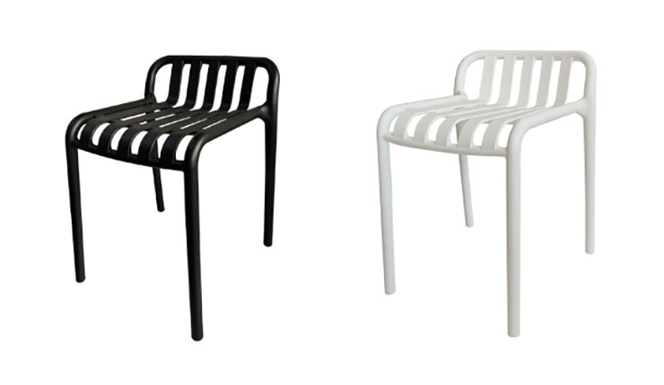 「ストライプハイチェアシリーズ」は、ストライプがおしゃれなデザイン。ローバックチェアとして、ダイニングやちょっとした場所に気軽に置くことができる。耐熱性が高く、強度に優れているポリプロピレン製となっている。屋内・屋外どちらにも置くことが可能。