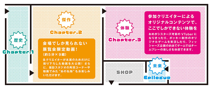 会場の構成は、まず参加クリエイターが出迎えるオープニング映像からスタート。ソーシャルメディアの発展と人々の価値観や文化の変遷を年表で振り返る「Chapter.1」、クリエイターたちの素顔に迫る「Chapter.2」に続き、「Chapter.3」には動画の企画・撮影・編集などを体験できる7種類のブースが用意された。