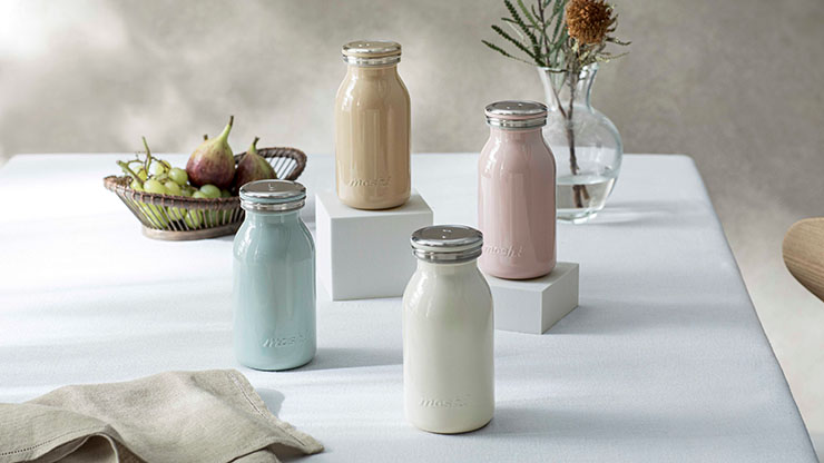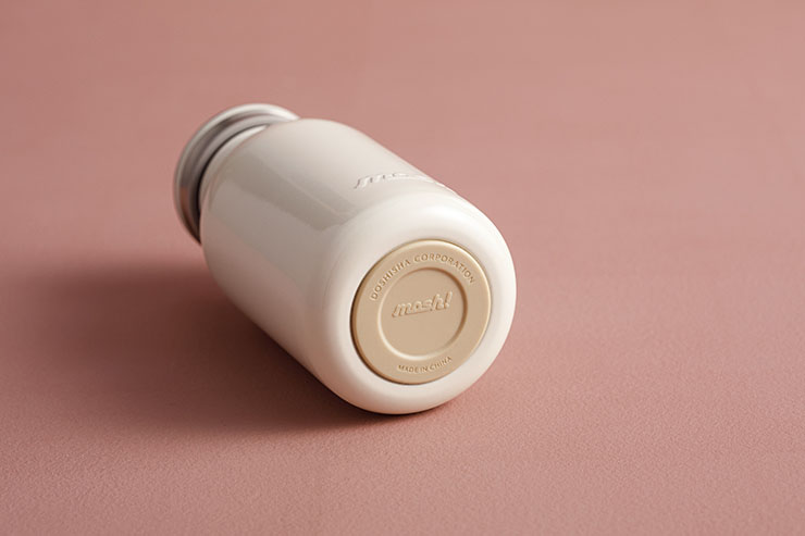 「mosh!ミルクボトル」は、シンプルながら愛着を感じるステンレスボトル。ステンレス真空2重構造で保温・保冷可能となっている。底部にシリコーンクッションが付いているので、置いた際の不快な金属音を防ぎ、本体の傷防止にもなる。優しい印象や大人らしい印象のくすみカラーで仕上げている。