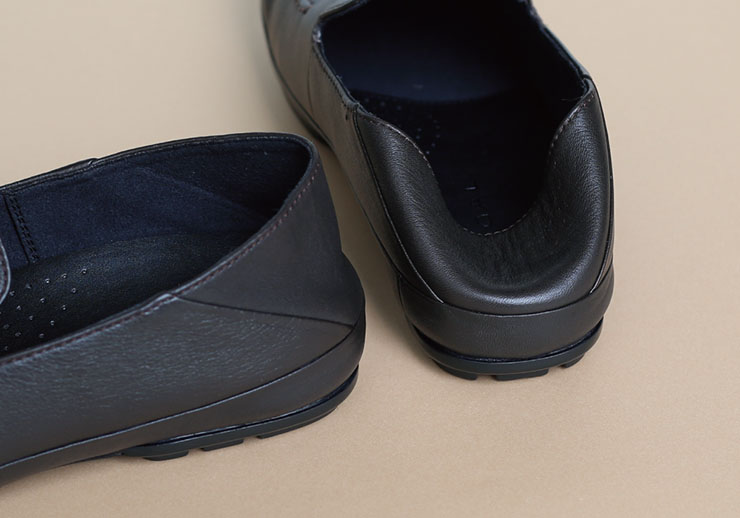 「フォールディングスリッポン」は、モカシンスリッポンをベースにした製品。バブーシュタイプのスリッポンシューズで、デイリーユースだけでなく、旅行にも出張にも活躍する、汎用性の高い仕上がり。アッパーはシュリンクレザーを採用。付属のブランドロゴ入りオリジナルシューバックに収納することで、旅先にも持っていけるポータブル仕様となっている。