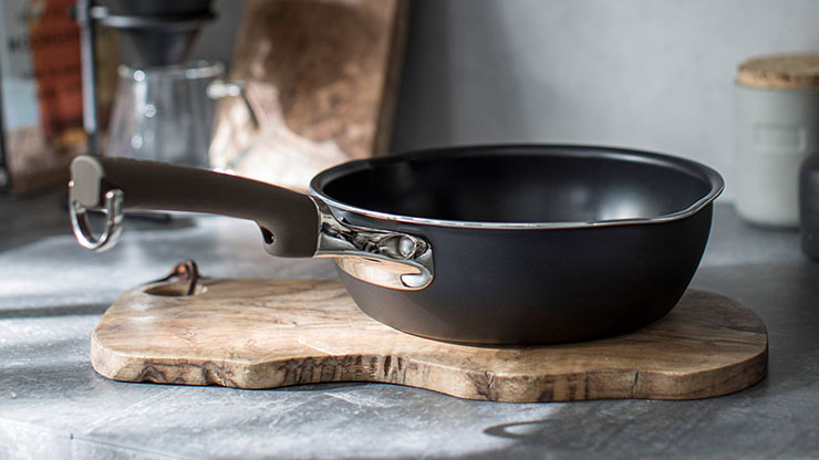 「evercookDECO」は、デザインにこだわったウッド調ハンドルを搭載。見た目の美しさだけでなく握りやすさも重視した自然な曲線を描いている。Dカンは調理中に邪魔にならないように、ハンドルの内側に入れたデザインとなっている。