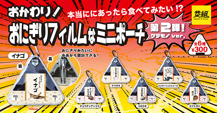 イエロー株式会社は3月3日、イエロー株式会社のオリジナルカプセルトイブランド「黄組」より「おかわり!おにぎりフィルムなミニポーチ」の発売を発表した。定番具材からはかけ離れた食材のコンビニおにぎりを表現。6月より、300円(税込)で販売する。