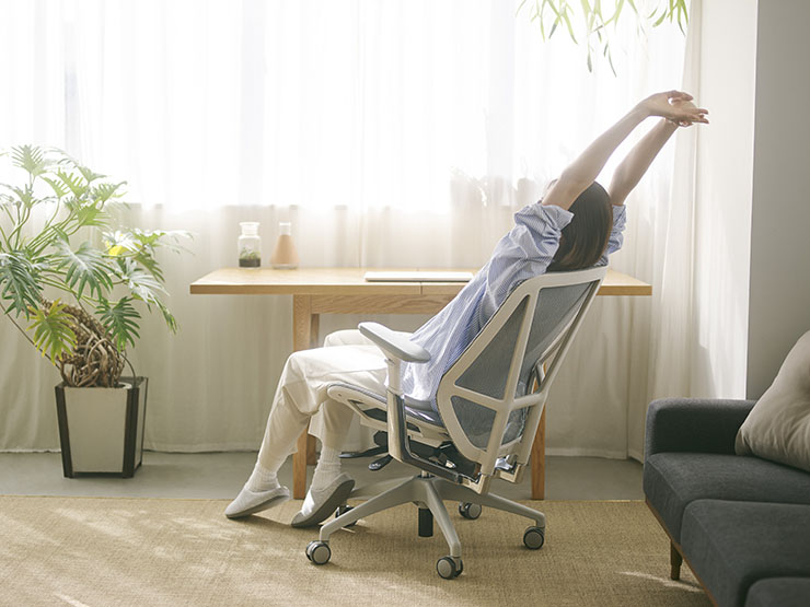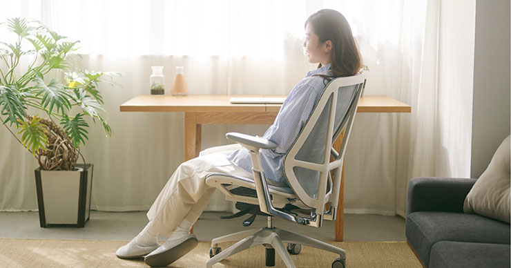 「パームワークチェア」は、チェア全体へ適切に体圧を分散する設計により、からだを支えるお尻や腰、背中の負担を軽減。「背骨のS字カーブ」を維持する背もたれで、からだの負担を軽減する。ゴツゴツした機械的なデザインを避けているので、インテリアにも馴染みやすい。
