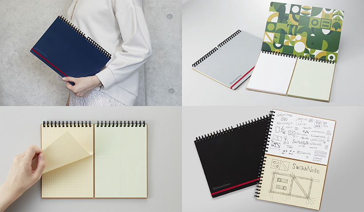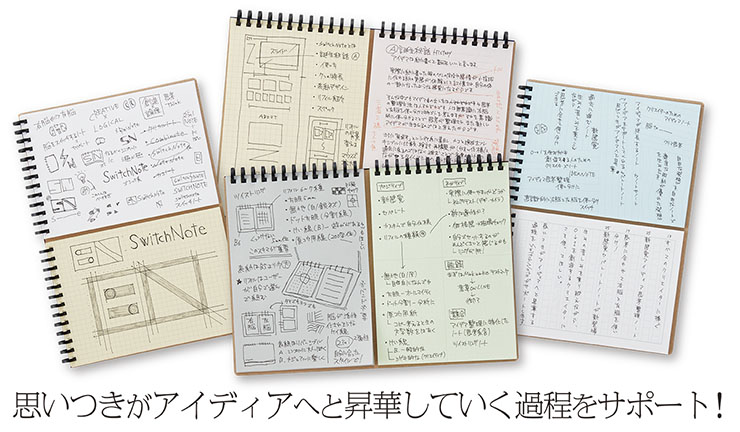 SwitchNoteは、創造的思考と論理的思考を整理しながらアイディアを成長させるノート。7種類の中から自分に合ったリフィルを選択し、セミオーダー形式で自分だけのノートを作ることができる。自分だけの思考形態を確立し、クリエイティブの質を高める。