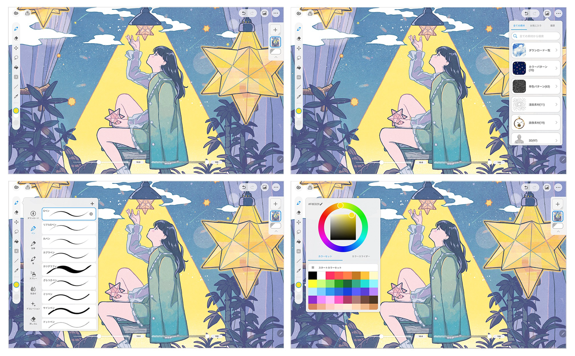さらに、タイムラプスのファイルサイズの軽量化、作品の作業時間の記録、3Dデッサン人形の操作性強化、フォント名の検索機能追加などの機能アップデートも行われている。より効率的かつ快適に作業を進めることが可能となる新機能だ。