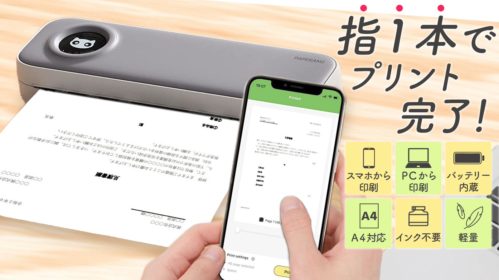 「Paperang F2S」の魅力は、その手軽さと汎用性にある。インクを必要としない感熱紙印刷を採用しており、充電式なので電源も不要。さらに、Wi-Fi接続も不要で、スマホやPCから直接印刷することができる。外出先や移動中でも手軽に印刷が可能となっている。