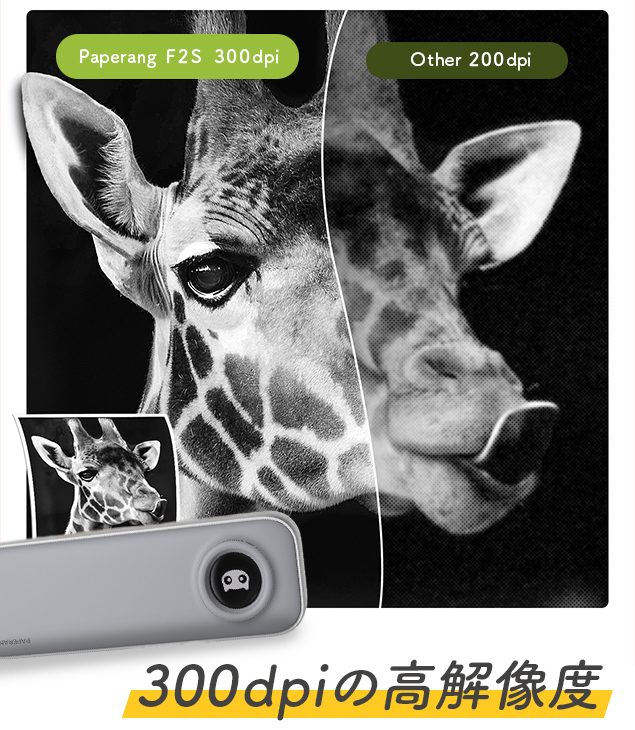 「Paperang F2S」での印刷は300dpiでの高解像度印刷が可能だ。文書のプリントアウトだけでなく、イラストのような繊細なものでも、しっかりと鮮明に印刷することができる。長持ちするバッテリーも搭載しており、フル充電状態でA4サイズの感熱紙を最大200枚印刷することができる。