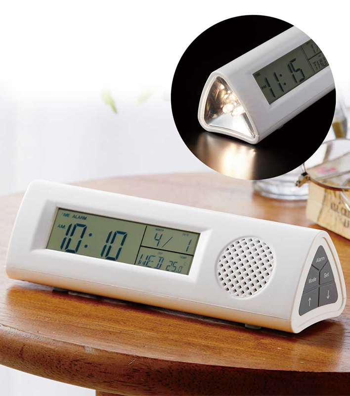 ワイドFM対応ライト付き多機能クロック