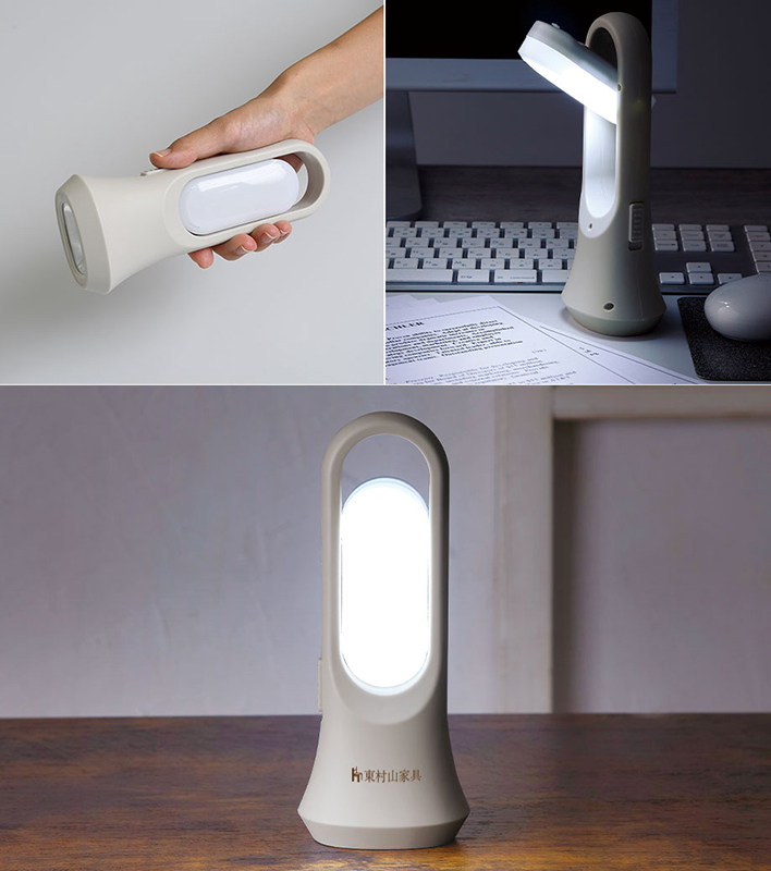 2WAY仕様で、手持ち・据え置きのいずれの方式でも使えるライト。普段は立ててルームライトとして使い、いざというときには持ち運んで懐中電灯として活用できる。スタイリッシュなデザインで、普段使いにも違和感はない。本体の側面に1色で名入れができる。