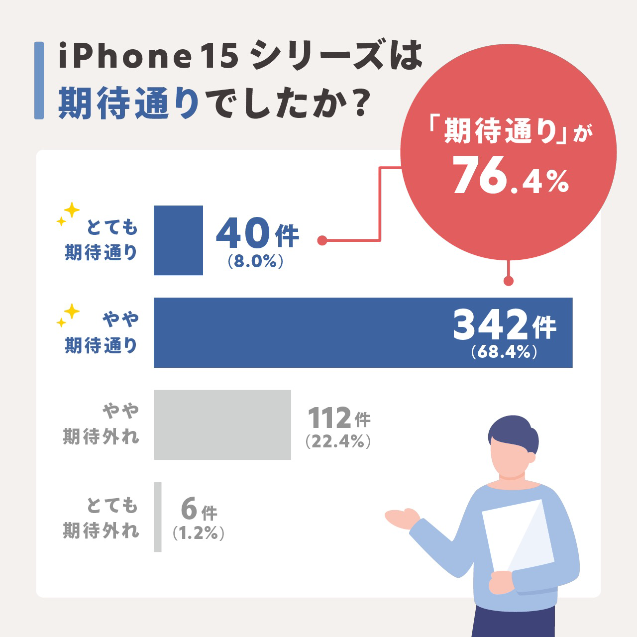 「なるほどスマホ」の調査結果によれば、iPhone 15シリーズは多くの人々から高い評価を受けている。新機能やデザインの変更は、購入を検討している人たちの期待に応える形となっているので、iPhone買い替えを迷っている人には参考になる結果だと言えるだろう。しかしその一方で、価格の高さは購入のハードルとなっており、一部のユーザーからは慎重な意見も出ている。