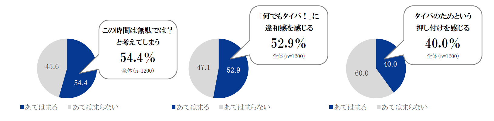一方で、今回の調査では「タイパ」を何よりも重要視することや、「何でも効率化」について、人々が違和感も覚えている傾向も見てとることができます。52.9%が「何においてもタイパの良さを求められることに違和感を感じている」と答えています。