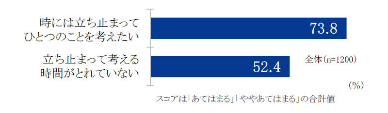 「時には立ち止まってひとつのことを考えたい」という回答の数値も73.8%と非常に高く、「何もしない時間を増やしたい」と考える人も約半数にのぼりました。これらの結果から、「セイコー時間白書2024」では「“タイパ疲れ” の兆し」が指摘されています。