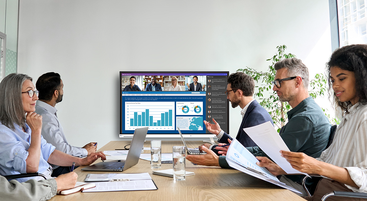 内蔵スピーカーは4.0+4.0Wの仕様で、モニターのベゼル内に搭載されています。音声をクリアに聞くことができ、これも会議室での使用に便利な理由の1つとなっています。さらに、付属リモコンが用意されていることは、壁掛けで設置した場合など、ディスプレイ前面のボタンでの操作が難しい環境でも便利です。