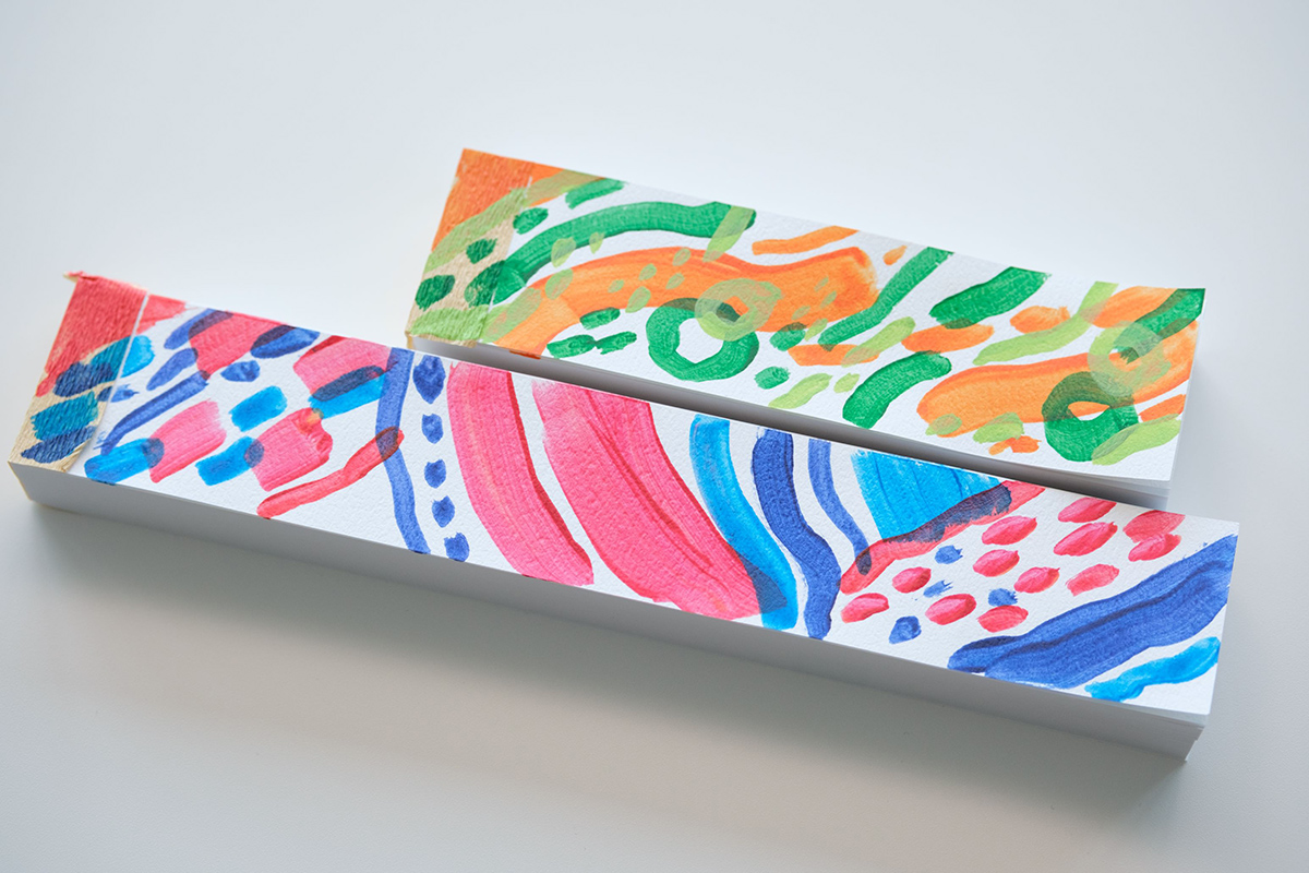 「ほんの切れ端」は、資源の循環の大切さも伝える商品です。普段はほとんど意識することがない書籍製造で生じる “切れ端” を、アーティストの彩色によって価値あるものへと生まれ変わらせました。本商品を通じて “紙” という資源について考えるきっかけにもなり、自分の生活にリサイクル商品を取り入れる体験ができます。