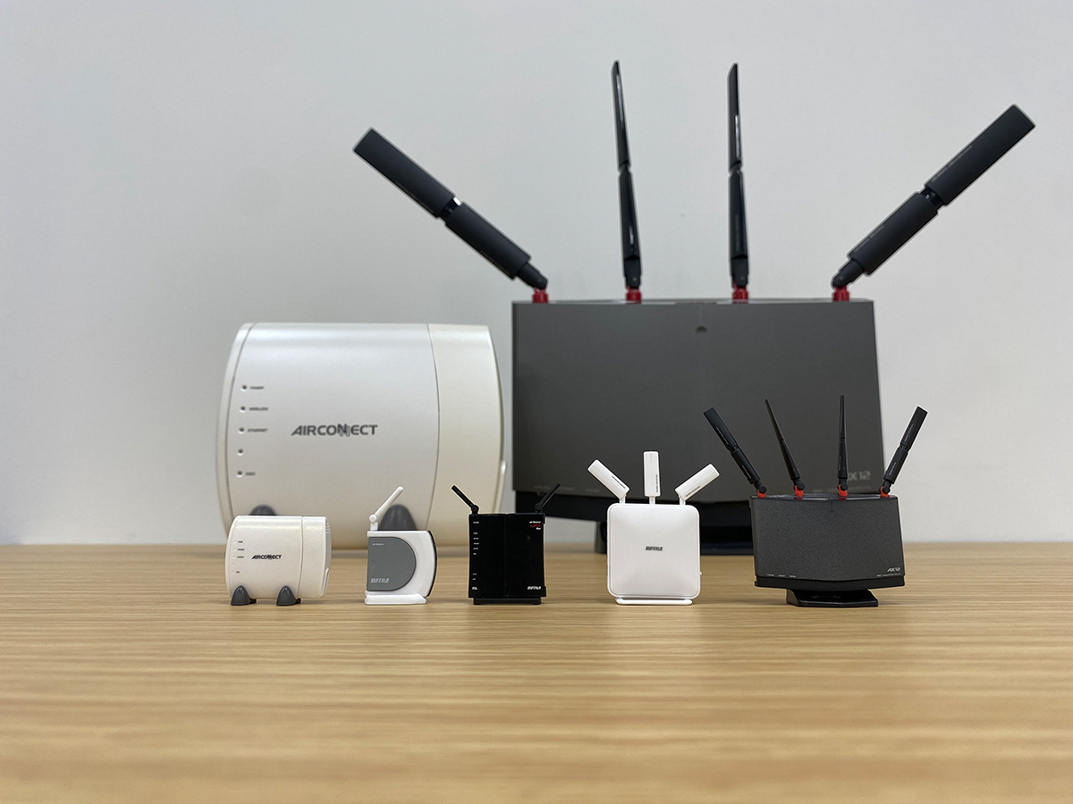 商品ラインナップには「WLA-L11」「WHR-G54S」「WZR-300HP」「WXR-1900DHP」「WXR-5950AX12」の “5機種” が用意されました。いずれもバッファローが過去に製造・販売した歴代のWi-Fiルーターで、カバーの着脱やアンテナの回転など、現物と同じギミックを楽しめるモデルもあります。