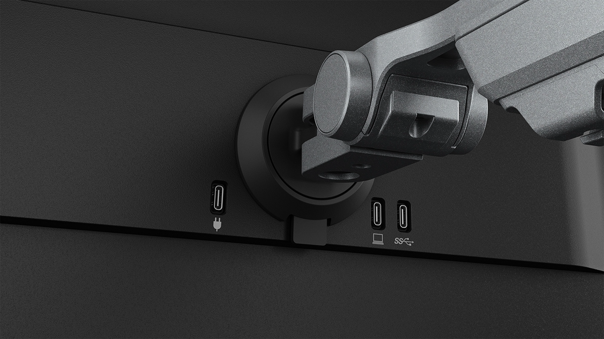 接続インターフェイスはUSB Type-C(アップストリーム/ダウンストリーム/ACアダプタ給電用が各1基)で、パソコンからの給電によって「FlexScan FLT」側のACアダプタなしに動作します。モニター側を電源につなぎ、パソコンへの60Wの給電も可能です。EIZO製品では初めて、Type-C接続のデイジーチェーン対応機種からの給電を受けて動作させることもできます。
