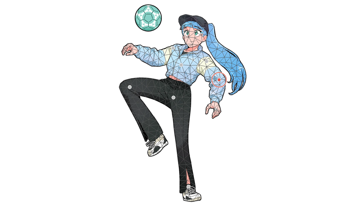 「パペット変形」はキャラクターのポーズの調整を容易にする注目の機能です。固定したい箇所にあらかじめピンを打ち、人形を動かすように変形できます。
