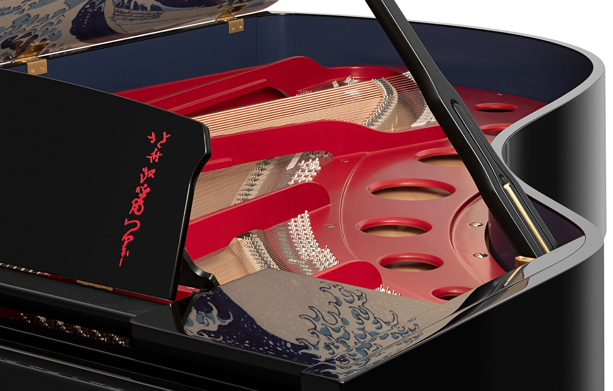 本製品は、ヤマハ株式会社の100%子会社であるL.Bösendorfer Klavierfabrik GmbH(ベーゼンドルファー社)のグランドピアノの限定モデルとして誕生しました。葛飾北斎の「富嶽三十六景」の中でも特に有名な「神奈川沖浪裏」をモチーフにしたデザインです。ピアノの屋根の内側に特殊な印刷技術で「神奈川沖浪裏」が描かれています。
