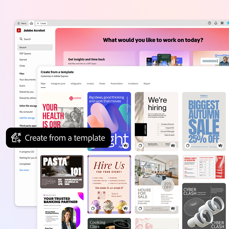 「Acrobat Studio」のもう1つの魅力は、「Adobe Express」の機能が組み込まれている点です。ユーザーは「Acrobat Studio」上でそのまま画像編集やデザイン作成を行うことができ、外部アプリに切り替える必要がありません。これにより、PDF資料に合ったビジュアルの追加やテンプレートの活用もスムーズになります。