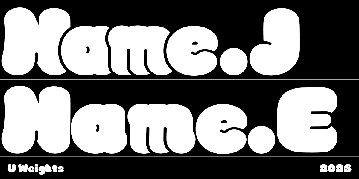文字は全体的に丸みを帯びた曲線で構成されており、内側にはうねるような模様も見られます。柔らかくポップな印象で、親しみや楽しさを感じさせるような効果もある書体です。