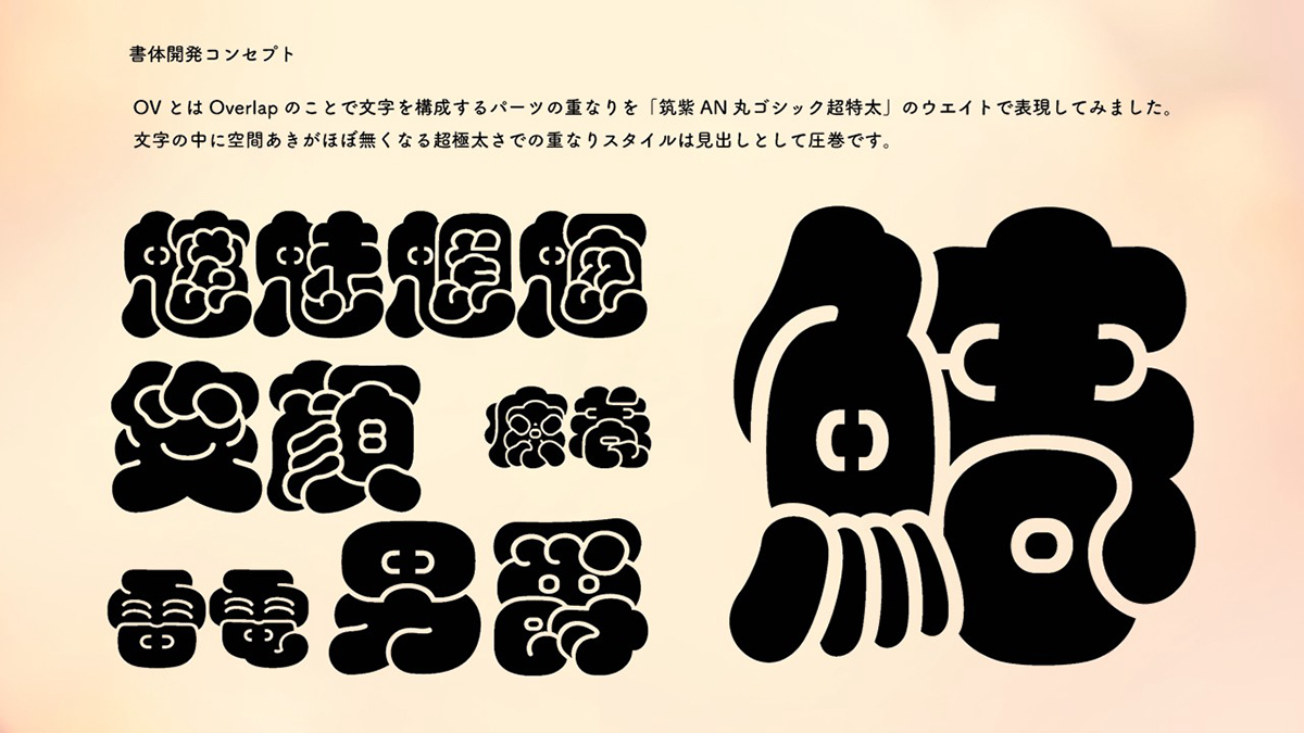 本書体は、とにかくインパクトの強いフォントです。一瞬で目を引きつけることができ、ユーモラスな雰囲気を伝えることができます。筑紫書体は2004年に「筑紫明朝-L」が生み出されてから数多くのフォントが登場してきたシリーズですが、その中でも「筑紫AN丸ゴOV-U」は藤田氏が「前人未踏のインパクトとアート感」と表現しているように、非常に個性の強い遊び心のある書体です。