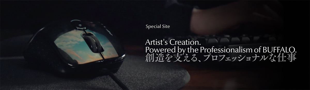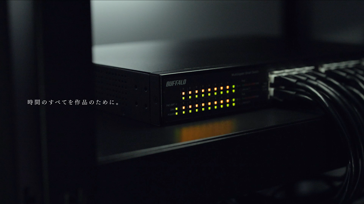 バッファローとアーティストとの共創で完成したCMは、同社のギャラリー/ポートフォリオサイトにて、これまでのものも含めて公開されています。「創造を支える、プロフェッショナルな仕事」という言葉の通りに、アーティストの挑戦を支える同社の「見えない、美学」を感じさせる必見のCMです。