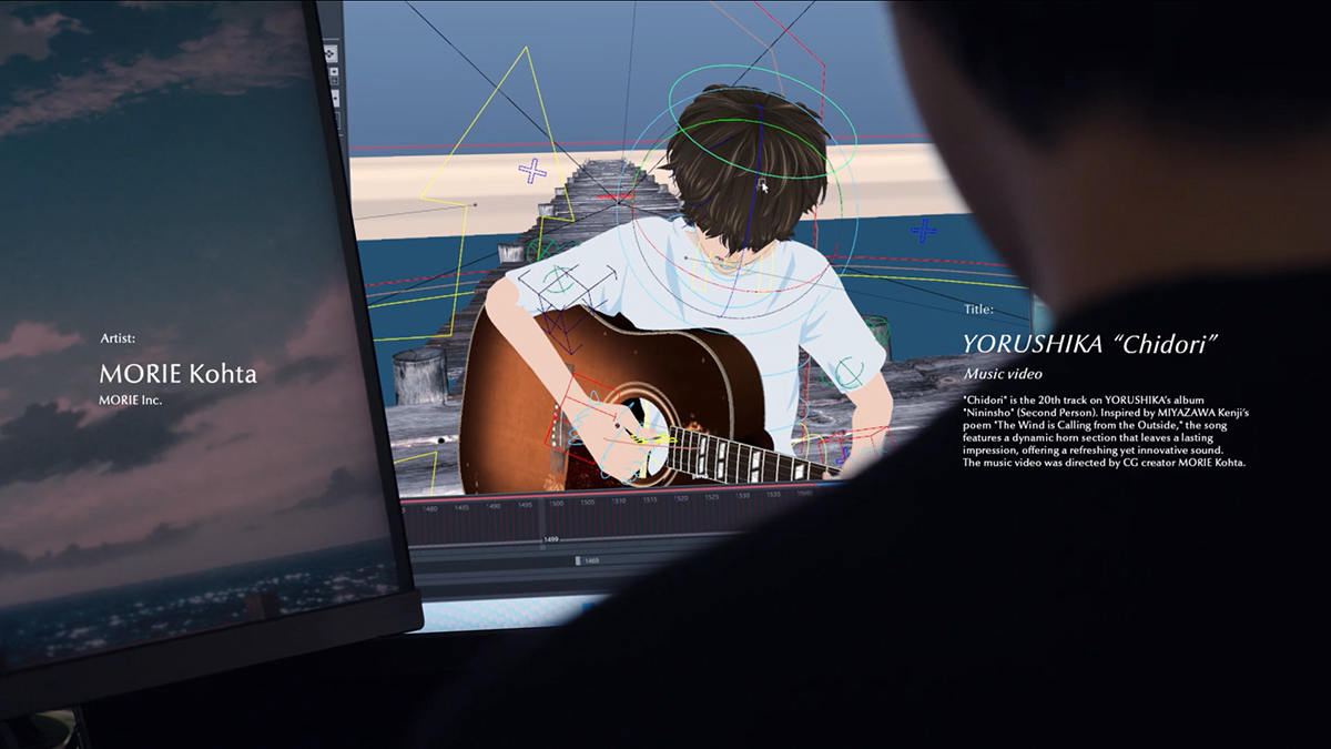 第4弾でフィーチャーされているのは、ヨルシカの楽曲「千鳥」のMVと、その監督を務めた映像作家/CGクリエイターの森江康太氏です。「千鳥」はヨルシカのアルバム「二人称」に収録されており、宮沢賢治(1896〜1933年)の「風がおもてで呼んでゐる」という詩を題材として作られています。