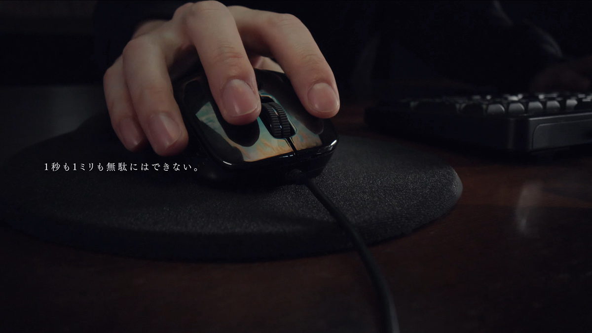 このMVの制作の裏側を支えるバッファロー製品の1つとして、USB接続式のBlueLEDマウス「BSMBU510MBK」がCMに登場しています。森江氏は、細かな調整の積み重ねのために「手元で少し動かしたことが、そのまま画面上にも正確に反映されてほしい」という理由で、あえて無線ではなく有線のマウスを選んでいるそうです。手にフィットして握りやすい形状も高く評価されています。