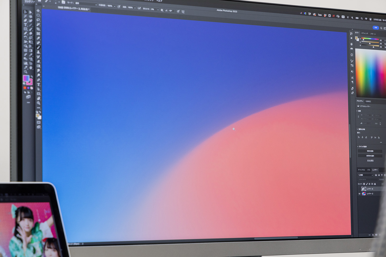 玉野 例えばアイドルの方のジャケットやアーティスト写真を制作する際などは、印刷データとWebデータの両方が必要になることがほとんどです。そういう時は基本的に印刷データを基準に作るのですが、配信やアーティスト写真ではWeb用データの方が使われる機会が多いので、できるだけ明るく綺麗に見えるようRGB用に調整することがあります。その際、彩度やコントラストを上げすぎて肌色が不自然になってしまうと困りますよね。「PD2706UA」はその辺りの再現性がしっかりしているので、安心して作業できるのがよかったです。