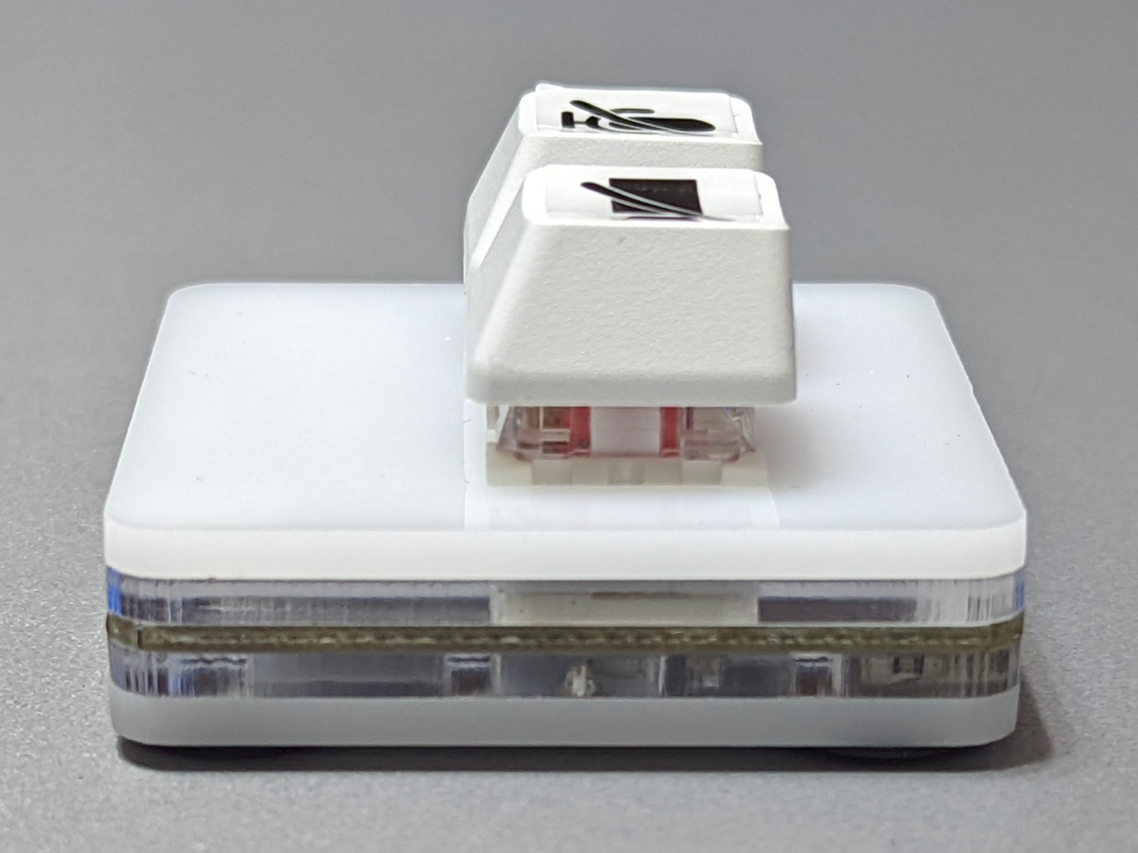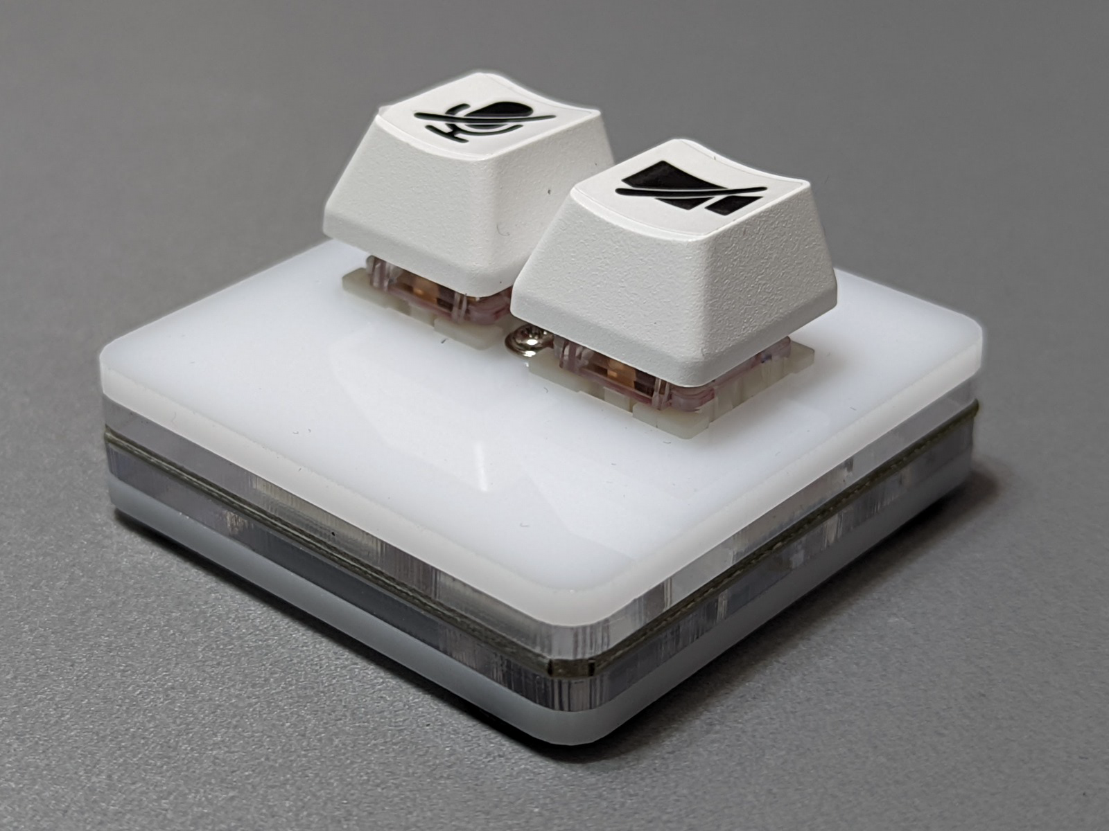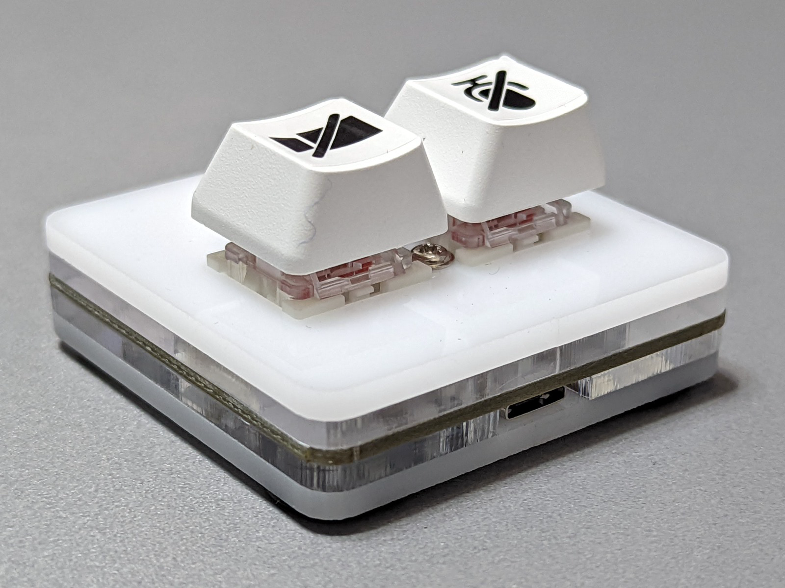 ほぼ正方形の本体には、2つのメカニカルキーが搭載されており、それぞれを押すことによって、カメラとマイクそれぞれのオンとオフが行えます。これをUSBでPCに接続しておくことで、面倒だったカメラとマイクのオン・オフが、物理ボタンで行えるようになるというわけです。