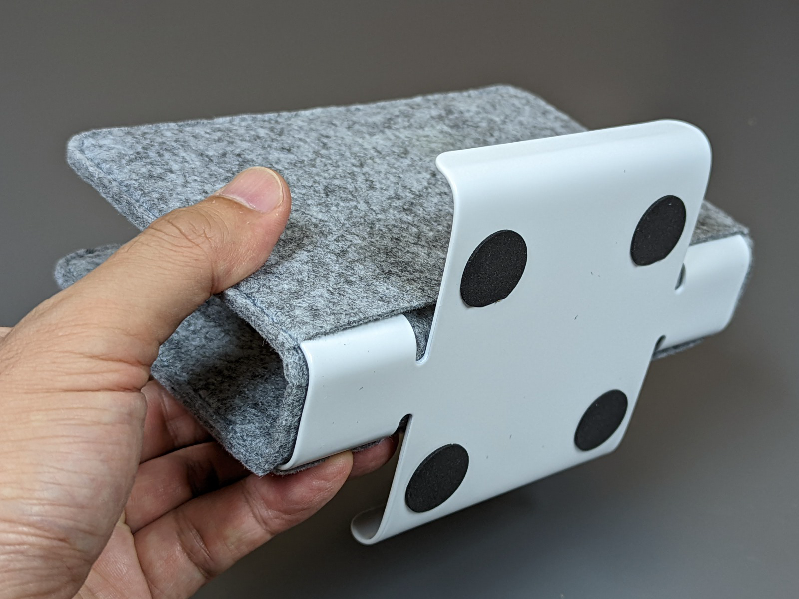 ノートPCスタンドを使うにあたってユーザの細かな要望が反映されたこの製品、最大17インチクラスのノートPCでも使えるなどしっかりした作りが特徴ですが、唯一気をつけたいのは、フェルトという素材の特性上、使い始めは細かい繊維が分離しやすいことです。