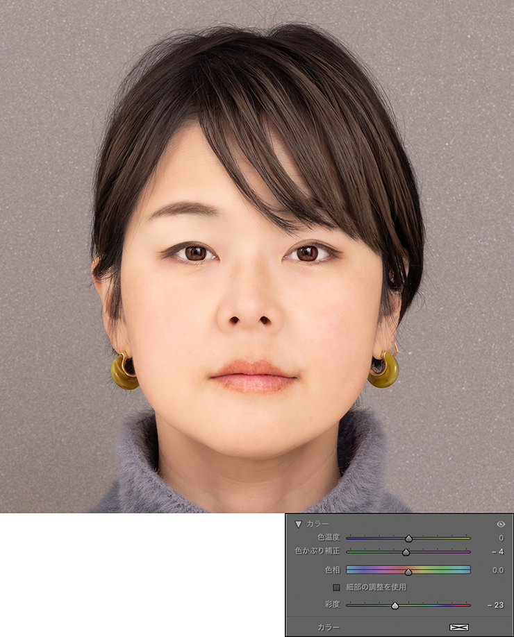 調整前と調整後を比べると、目の輝きがアップしているのが分かると思います(図22)(図23)。
