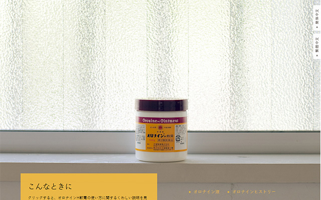 フルスクリーン&パララックスでブランディング色を前面に打ち出した大塚製薬の「オロナイン公式サイト」(www.otsuka.co.jp/ohn/