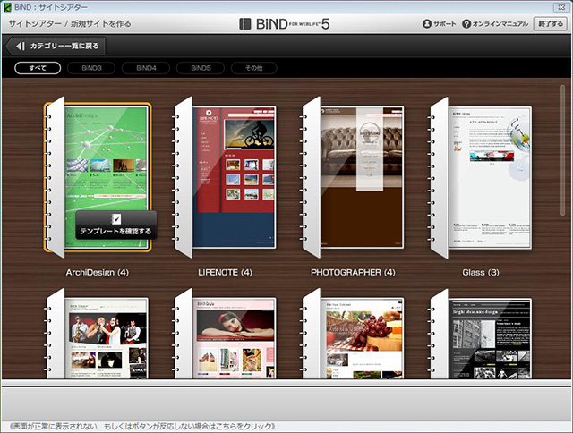 「LiVE」はブランディングサイトなどプレゼンテーション目的のWebデザインに適したソフトウエア。これに対して、姉妹製品である「BiND」はより情報量の多い一般的なWebサイトを高品位なデザインテンプレートを活用して制作するソフトウエアだ。