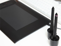 蛯原さんはIntuos4用のペンを2本用意し、1本は標準径ラバーグリップを、もう1本は太径ラバーグリップを取り付けて使用している。作業内容によって2本のペンを使い分けることで、作業効率や作品の仕上がり品質が大幅にアップしたそうだ