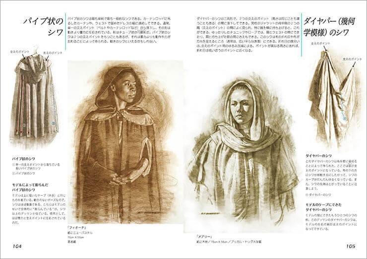 著者がアメリカ人なので、掲載されている参考作品の人物はすべて欧米人である。そのため、日本(アジア)人をモデルに人物作品を描きたい人には、少し参考になりづらいかもしれない。また、木炭やパステルを使った表現方法が多いので、鉛筆を使って時間をかけてしっかり描きこみをしたい人は後に紹介する「人物デッサンテクニック」のほうがオススメである。