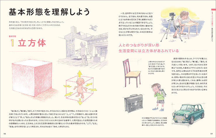 人物以外にも「デッサン」について、かわいいイラストと共に分かりやすく丁寧に基本を教えてくれる一冊。とても読みやすく、これからデッサンを始めてみたい! という人にはとてもおススメできる内容になっている。この一冊があれば、静物や風景デッサンも学ぶ事ができるし、初心者のよくある悩みはある程度解消できるだろう。