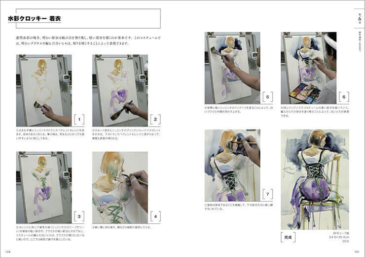 また、水彩(筆)を使った人物表現が紹介されているのも魅力だ。鉛筆や木炭を使った人物デッサンテクニックを伝える本が多いが、水彩クロッキーの本は珍しい。モノクロだけではなく、カラーでも人物を描きたい人の参考になるだろう。