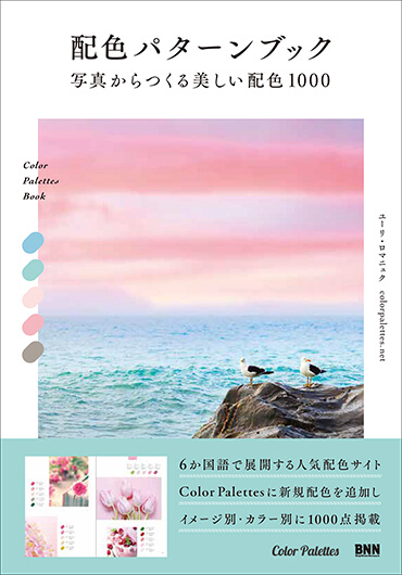 本書は世界6か国語で展開されているポーランドの配色サイト「Color Palettes」を日本向けに再編集して出版された配色パターンブックだ。「ロマンチック」「オーガニック」などイメージワード10章と、赤から黒までの色で構成された10章を、美しい写真から配色として見せる。