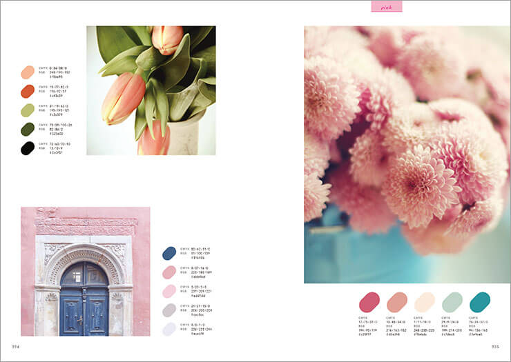 特徴は何といっても配色サンプルとして使われている風景、自然、インテリア、雑貨など写真の秀逸な美しさだろう。特に植物は画家ジョージア・オキーフばりのアップで配色美を伝えるのにとても適している。癒しの体験までできそうなこのビジュアルは、色を楽しむ「写真集」としても使えそうだ。しかし侮るなかれ。よく観察するとそこに複雑な色の取り合わせが発見でき、初心者から上級者までのアイディアソースとして使える実力ある一冊となっている。