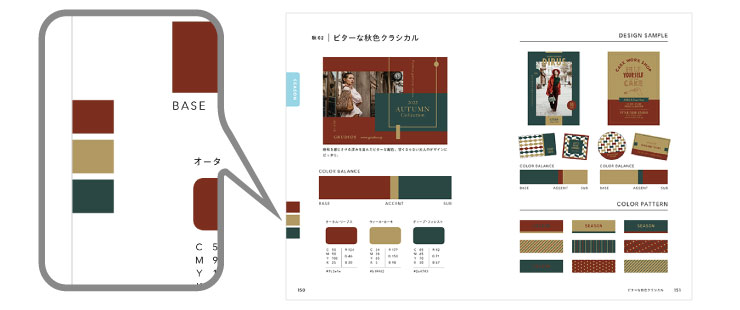 さらに日本向けとしてイメージにあった配色の色見本が3色、4色、5色で提示されている。
