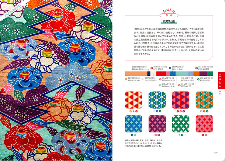 温故知新とはよく言ったもの。東アジアで登場する日本の着物柄や沖縄の紅型は、改めて見ると色使いが斬新だ。こうした伝統的、民族的なものから今世紀に誕生したものまで、パッケージや包装紙などグラフィックデザインではもちろん、様々なジャンルのクリエーターに新しいアイディアを与える一冊だ。