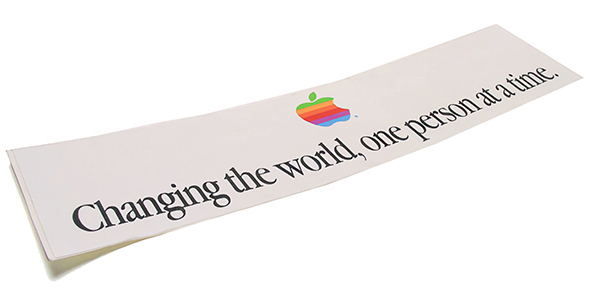 「一度に一人ずつの革命」("Changing the World, One Person at a Time"を意訳したもの)とは、「何事かを成し遂げるには、身近なところから始めよ」という意識改革を促すフレーズで、Apple以外にも様々なところで使われている。たとえば、富士フイルムの現在のスローガンである「世界は、ひとつずつ変えることができる」も、この言葉が元ネタだ。