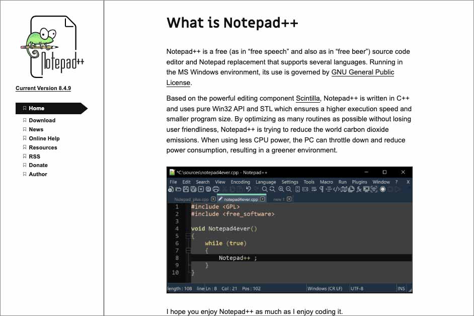 Webサイト:https://notepad-plus-plus.org/