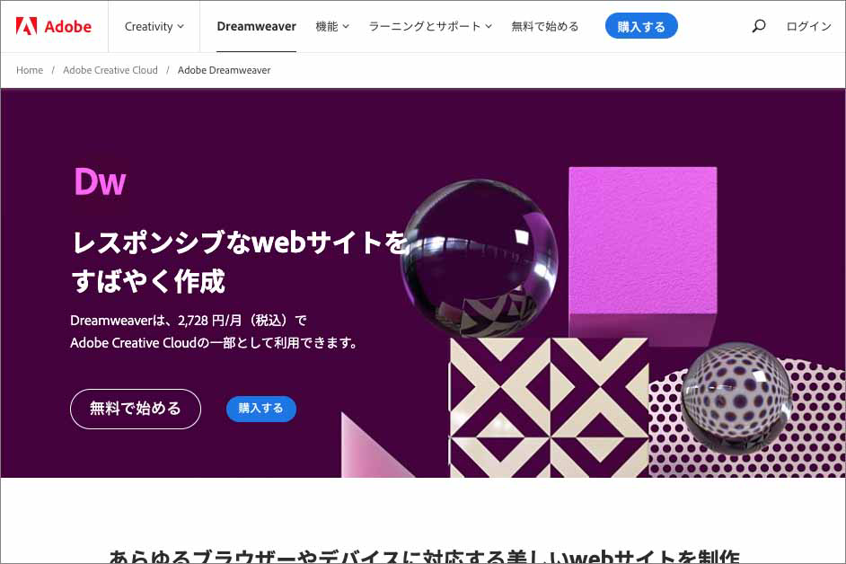 Webサイト:https://www.adobe.com/jp/products/dreamweaver.html