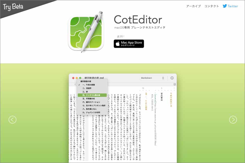 Webサイト:https://coteditor.com/