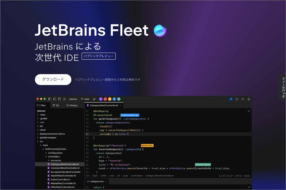 Webサイト:https://www.jetbrains.com/ja-jp/fleet/